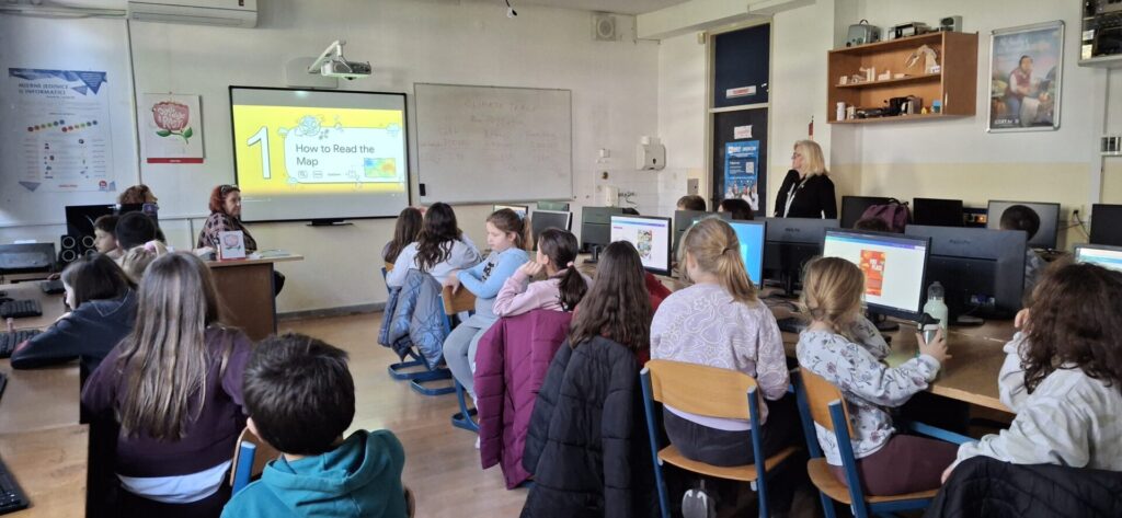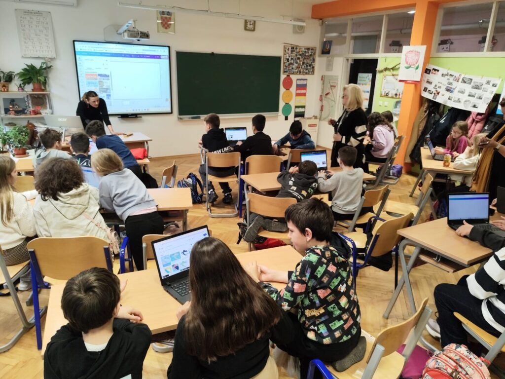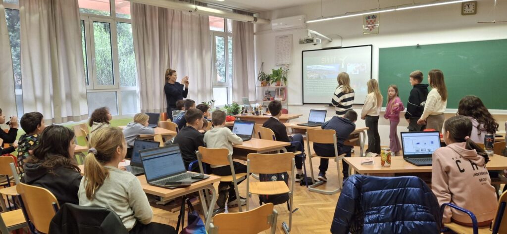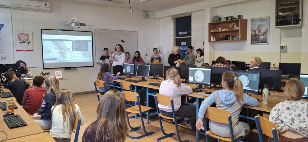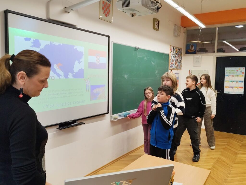 Učenici naše škole su ugostili učenike 32nd Primary School of Piraeus iz Pireja, Grčka koji su došli u okviru KA122 projekta „Approaching 21st Century Skills Through the Lens of Artificial Intelligence“ i učiteljicu Anke Petersen koja je došla na job shadowing. Prvi dan su učenici imali zajednički susret na kojem su prezentirali svoje države, grad i škole., a potom i vođenu šetnju po školi koju su vodili učenici Erasmus grupe.